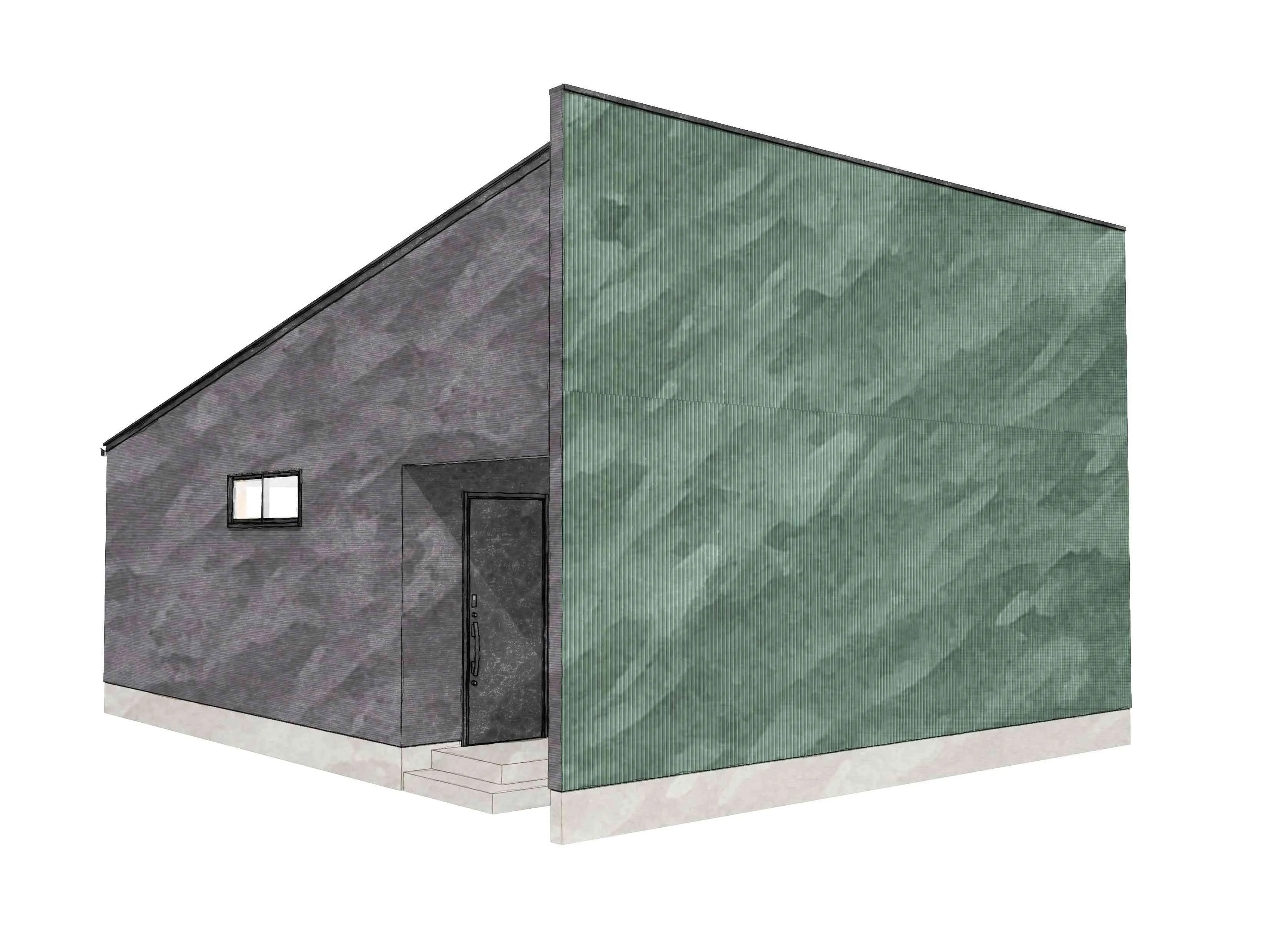 外観イメージ。モスグリーンのガルバリウム鋼板を使用。