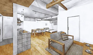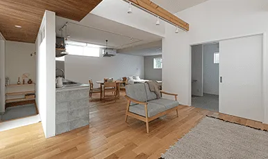 また、暮らしていくなかで必要に応じDIYで収納や間仕切り、部屋等をプラスしていき究極の住まいとして完成します。