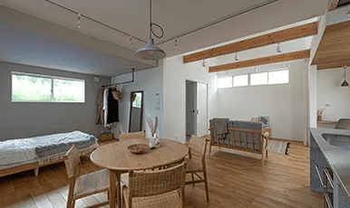 ライフスタイルの変化と共にフレキシブルな変化が可能な究極の平屋。ゼロLDKでありながら飽きのこない空間となります。
