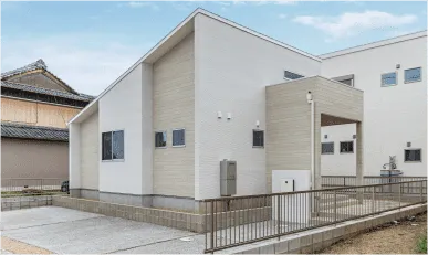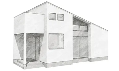外観イメージ。モスグリーンのガルバリウム鋼板を使用。