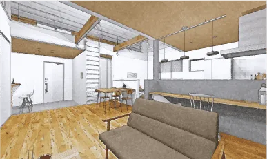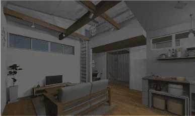 インダストリアルスタイルの内観パースのVRはお問合せください。