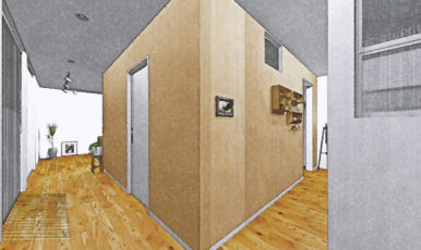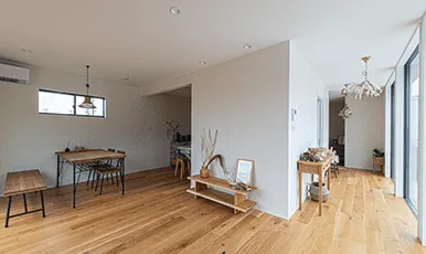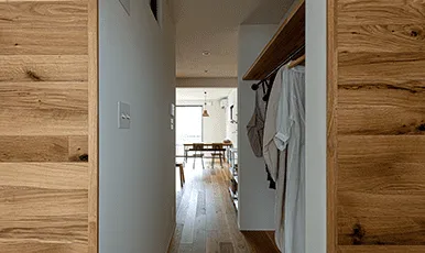 家の中に小道を造り込むことでコの字の仕切りを作り出しています。個も大切にしたい、家族とのつながりも感じたい、その両立を大切にする方にお勧めです。