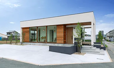 道路と居住スペースとの視線を遮ぎりながら同時に小道となるスペースは外から見えることを前提にしたファサード。「好きなものに囲まれて」「ディスプレイを楽しむ」というコンセプトが加わりはじめてお家の表情が決まります。その意味合いを考えファサードの窓は開閉という機能を排除。また、玄関ポーチとつながる中庭は土間テラスやウッドデッキにする事で、DIYの理想スペースとなります。