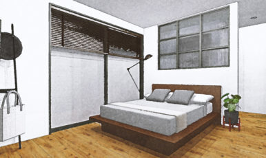 ひとつのつながった空間でありながら離れた位置にベッドスペースやリビングを選択できるのが特徴。日当たりやライフスタイルの好みに合わせて使い分けることができます。