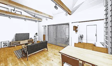 インダストリアルスタイルの内観パースのVRはお問合せください。