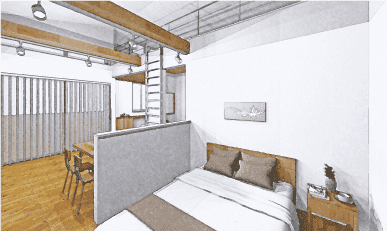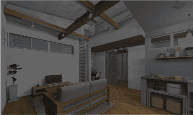 インダストリアルスタイルの内観パースのVRはお問合せください。