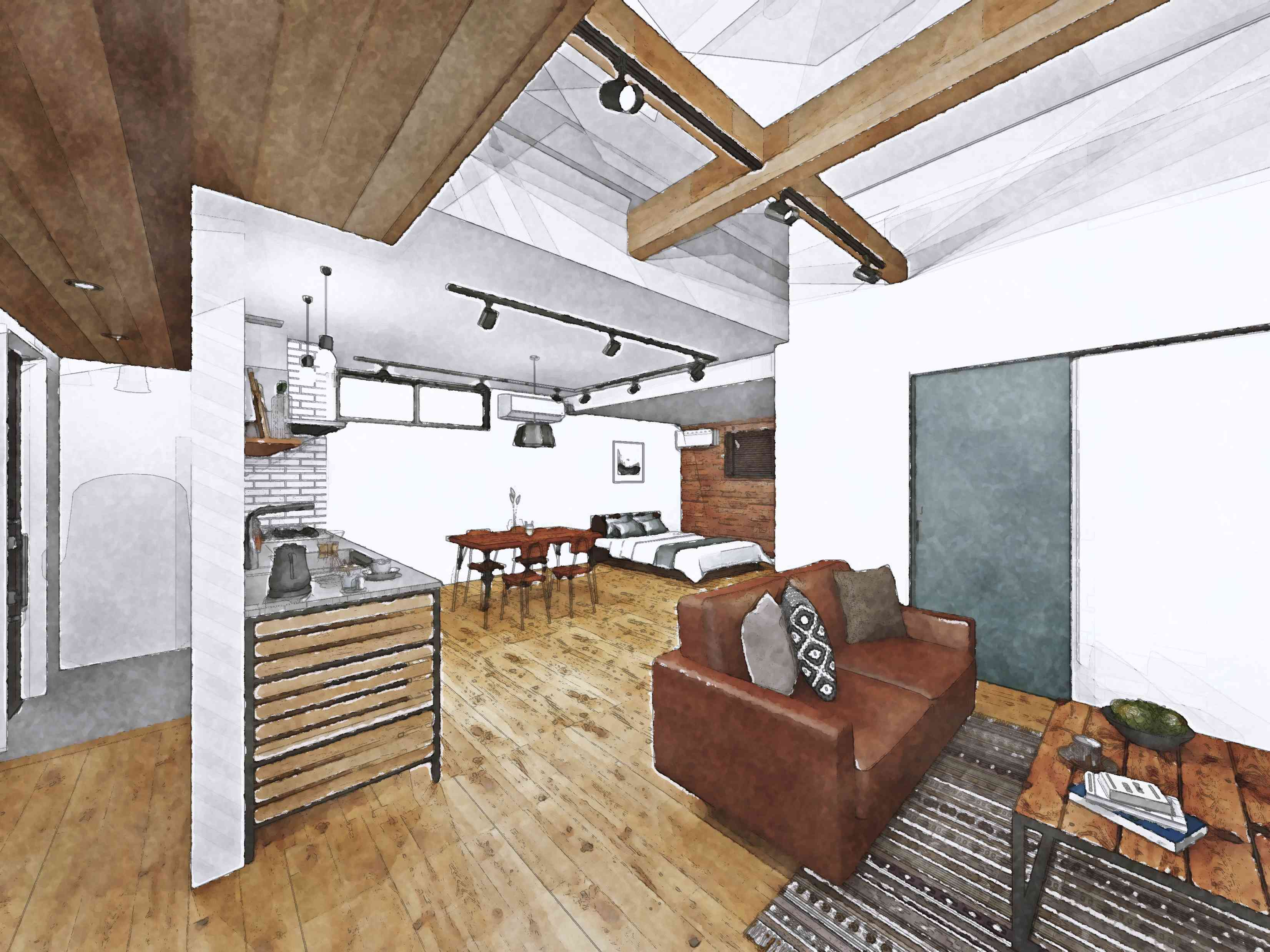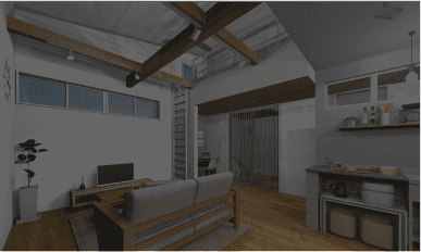 インダストリアルスタイルの内観パースのVRはお問合せください。