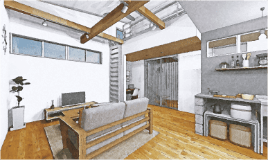 また、暮らしていくなかで必要に応じDIYで収納や間仕切り、部屋等をプラスしていき究極の住まいとして完成します。